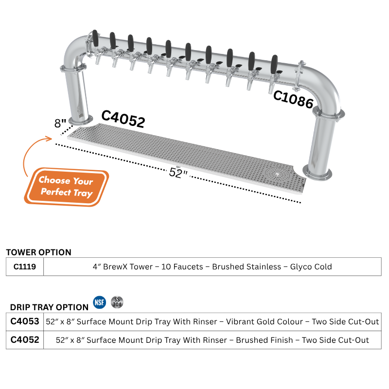 | C1119 | 10 Faucets | 4″ BrewX Tower – 10 Faucets – Brushed Stainless – Glyco Cold |